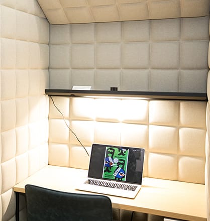 - オンライン会議等で利用できるテレワークブースを2階(2席)と4階(1席)に設置しており、ご予約なくご利用いただくことが可能です。