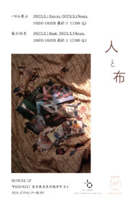この展示では、2つのブランドが布地を通して出会い繋がった人々に直接インタビューして伺ったお話と布地を展示します。