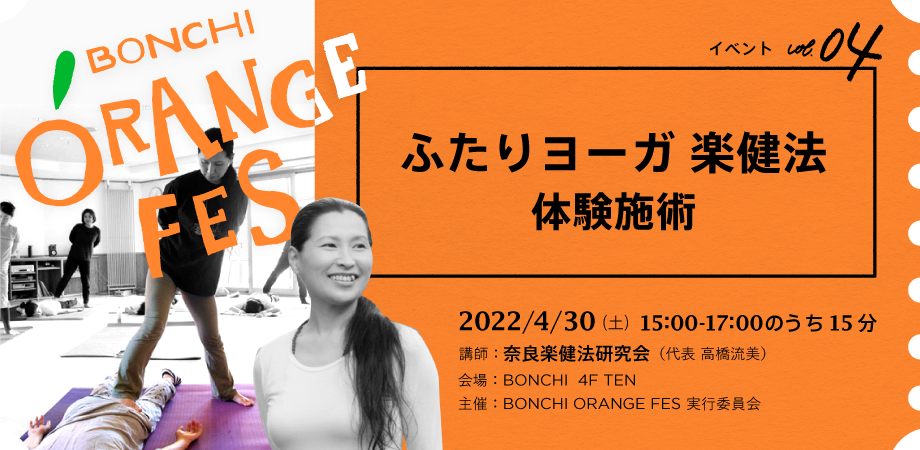 イベント vol.3![]() 4/29(金・祝)15:00-16:30 | イベント vol.4![]() 4/30(土)15:00-17:00のうち、1人15分ずつ 講師:奈良楽健法研究会(代表 高橋流美) |