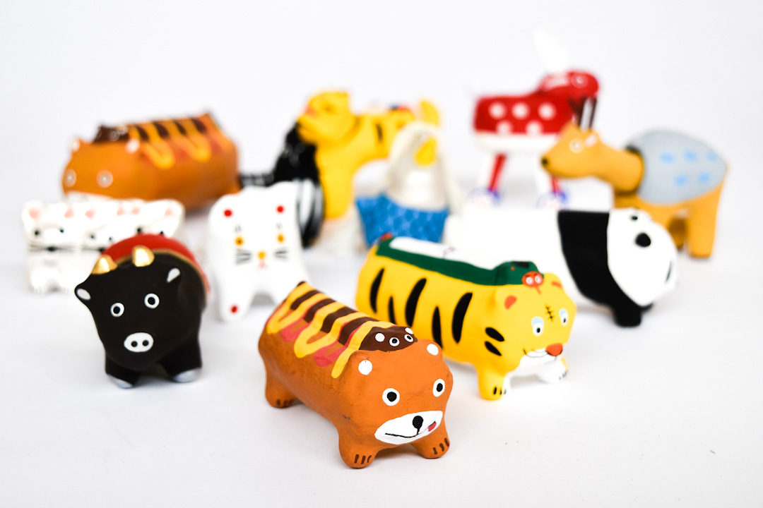 干支のうさぎやユニークなフォルムの動物などの張り子にペンを使って絵付け体験ができます。自分だけのオリジナル張り子を作ってみてください。