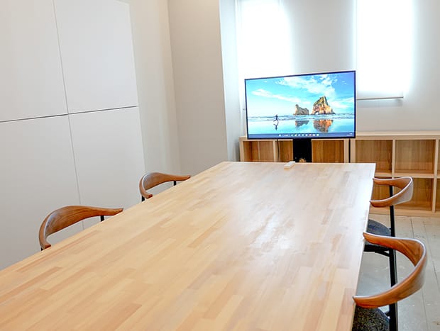 4名用と8名用の会議室をご用意しております。 モニターやホワイトボードが常設されており、打ち合わせや商談、テレワークなど幅広くご利用いただけます。